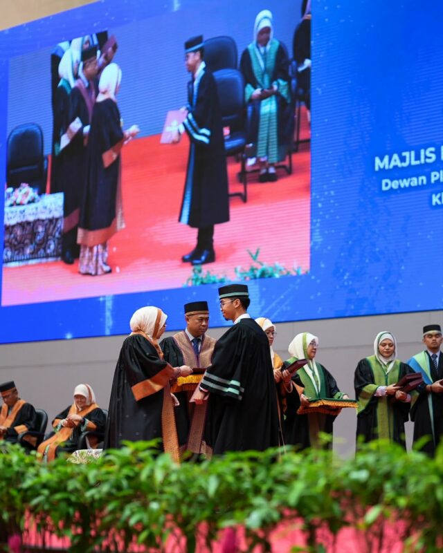 The ceremony was blessed with the recital of Al-Quran verses (Surah Ar-Ra’d, verse 20 to verse 24) by Yang Mulia Mohammad Abdul Qadir Jailani bin Mohammad Adiyusnira, a graduate from the Level 5 Diploma in Electrical and Electronics Engineering, School of Science and Engineering, PB. The translations of the selected verses were then delivered by Yang Mulia Mohamad Nursyazwan bin Haji Awang Wardi, a graduate from the Level 5 Diploma in Architecture, School of Science and Engineering, PB.
