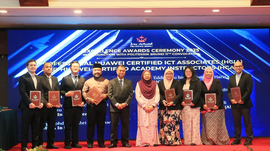 Also present were representatives from the Ministry of Education, Embassy of the People’s Republic of China, Huawei Technologies (B) Sdn. Bhd., Innovation Awards juries, and event sponsors. Among those in attendance were Yang Mulia Dayang Hajah Dinah Haziqah binti Haji Johan, Acting Assistant Director (Corporate, Planning and Development); Yang Mulia Dayang Rahimah binti Mohiddin, Acting Assistant Director (Academic); and Yang Mulia Dayang Armah binti Tengah, Acting Principal of Politeknik Brunei, along with several heads of schools, officers, and proud family members.