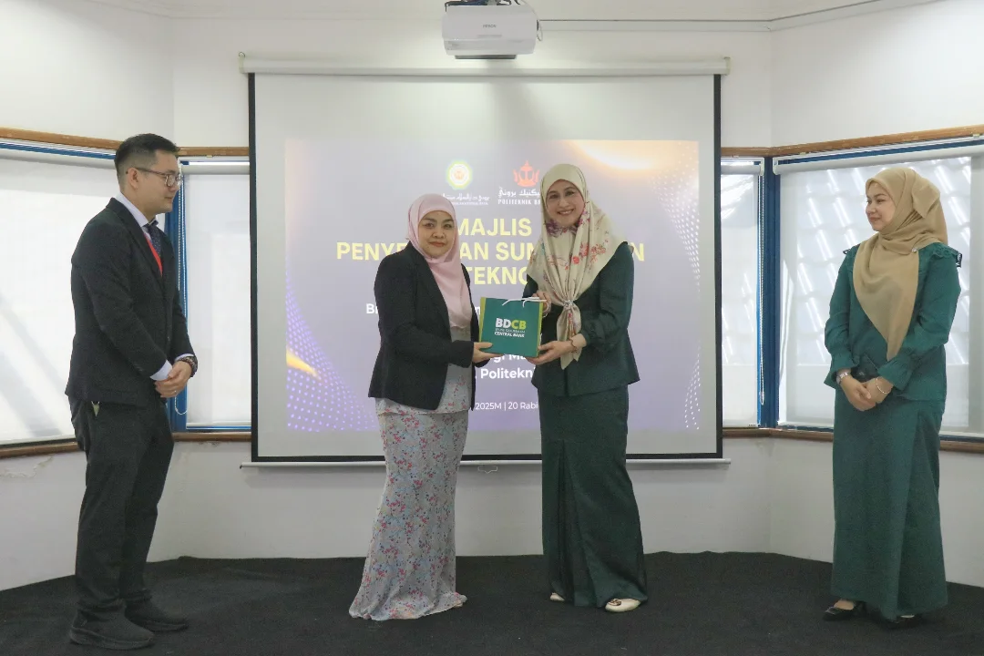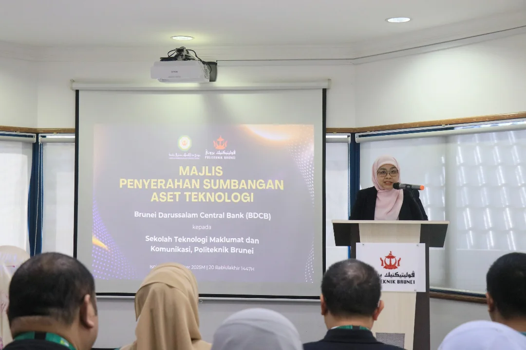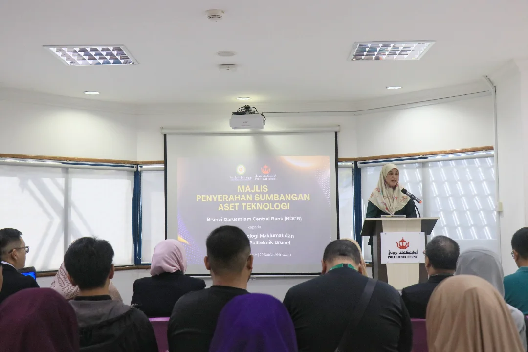 The handover ceremony took place at Politeknik Brunei and was graced by the presence of the Guest of Honour, Yang Mulia Puan Hajah Sufinah binti Haji Sahat, Assistant Managing Director (Corporate Development) of BDCB. Also in attendance were Yang Mulia Tuan Mohammad Soffean bin Haji Junaidi, Head of Corporate Services Division and Deputy Chairman of BDCB’s Corporate Social Responsibility (CSR) Committee; Yang Mulia Siti Nur Afiqah binti DP Col (B) Haji Joharie, Head of Technology Division; along with officers from BDCB.